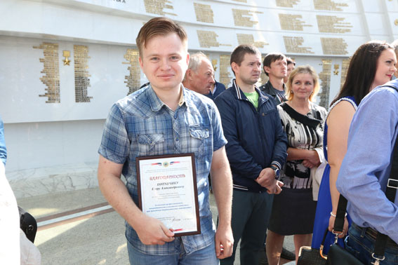 Начальник Центра полковник милиции И.Н. Оберемко на торжестве вручил почетную грамоту сотруднику музея Егору Потупчику за активное сотрудничество при проведении совместных патриотических мероприятий.