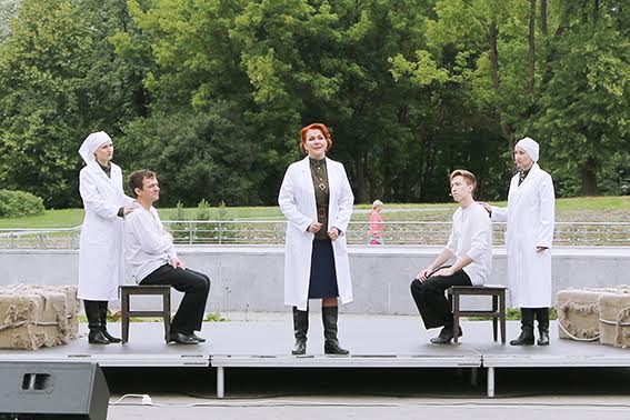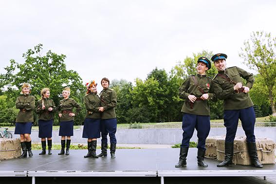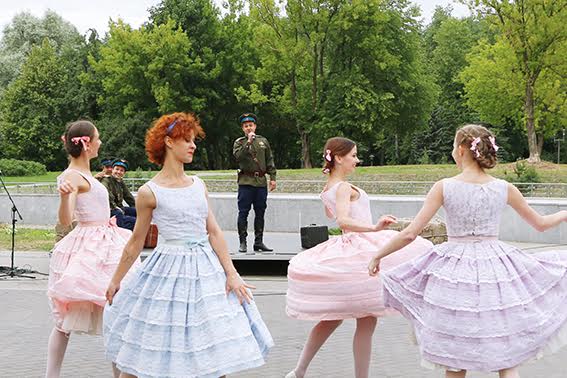 Музыкально-театральную часть праздничной программы представили артисты Белорусского государственного музыкального академического театра. В блестящем исполнении солистов прозвучали популярные, всеми любимые песни военных лет. Своим неповторимым вокалом порадовала зрителей Наталия Викторовна Гайда – народная артистка Беларуси. Не оставили музейную публику равнодушной также превосходные хореографические номера и театральные зарисовки.