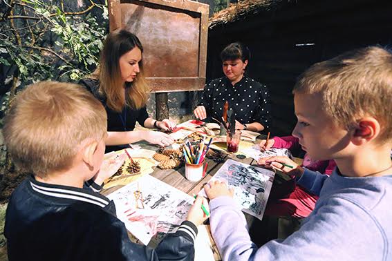 Несмотря на то, что школьные каникулы в самом разгаре, юные посетители получили возможность стать учениками «Лесной школы». Уроки проводились не в привычных кабинетах, а в партизанском лагере. Рассказ об экспонатах «Лесной школы» помог узнать, как обучались сверстники сегодняшних школьников в военное время, когда не хватало привычных вещей – учебников, тетрадей и ручек. На старых обоях, при помощи угольков, пера и чернил, полученных из сока клюквы и черники, ребята выводили такие строки: «Коля – партизан», «Победа за нами», «Мы за мир». Самые старательные ученики получили аттестат «Лесной школы».