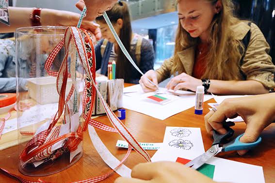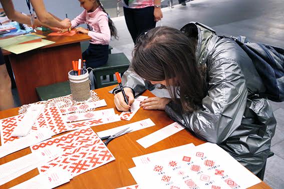 Желающие могли, к примеру, своими руками сделать авторскую открытку ко Дню Независимости с элементами национальной символики. А еще – освоить азбуку белорусского орнамента и изготовить оригинальную закладку-сувенир в виде ручника. Самые юные посетители с удовольствием принимали участие в изготовлении несложных, однако полных философского смысла, поделок «Мир в твоих руках». Неожиданной и приятной оказалась активность в этих зонах иностранных гостей.