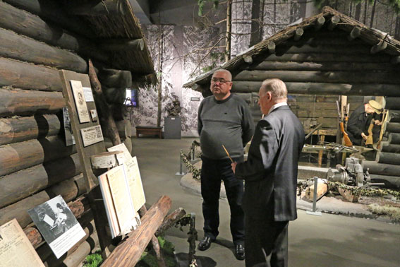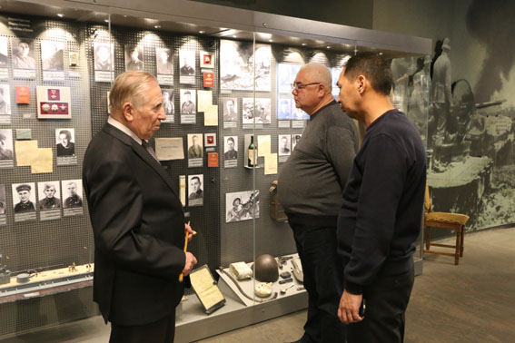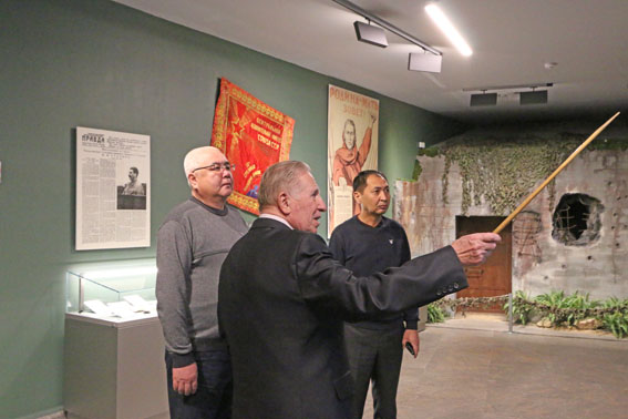Экскурсию по залам музея с представителями Генерального штаба Вооруженных Сил Кыргызской Республики провел заведующий сектором научно-методической работы, Ветеран Вооруженных Сил СССР и Республики Беларусь, участник боевых действий в Афганистане, полковник в отставке Владимир Поликарпович Фалецкий.