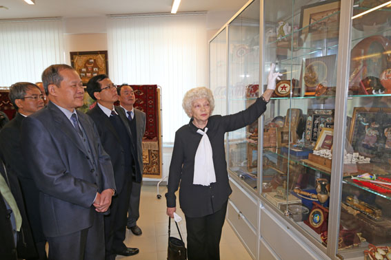 Старший научный сотрудник музея Наталья Иосифовна Филиппович провела небольшую экскурсию по залу, где экспонируются памятные подарки иностранных делегаций, в том числе Вьетнама.