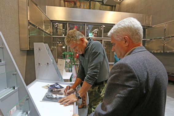 Сотрудники музея сфотографировались с известным американским актером, взяли у него автограф и вручили памятный сувенир.