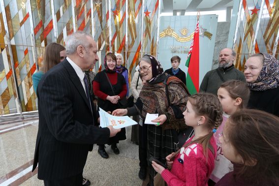 31 марта 2017 г., в канун Дня единения народов Беларуси и России, Белорусский государственный музей истории Великой Отечественной войны посетили воспитанники и насельники Псковской Обители милосердия, находящиеся в паломнической поездке по святыням и местам боевой славы Республики Беларусь. Паломников сопровождала сестра паломнической службы Свято-Елисаветинского монастыря г. Минска Татьяна.