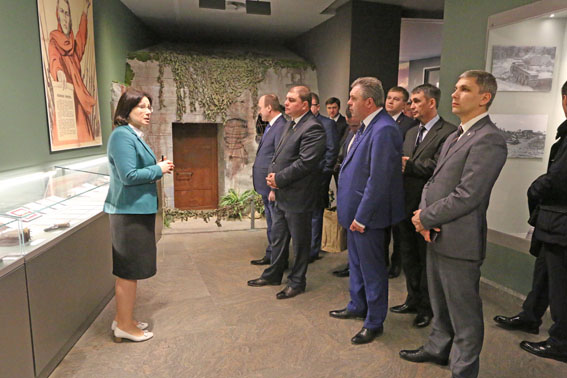 Делегация из Орловской области ознакомилась с экспозицией музея. Экскурсию с российскими гостями провела научный сотрудник Татьяна Тройнель. Особый интерес у членов делегации вызвали героические действия представленных в экспозиции участника героической обороны Брестской крепости Героя Советского Союза М.И. Мясникова – бывшего курсанта школы шоферов пограничных войск и политрука полка 124-й стрелковой дивизии лейтенанта Ф.И. Подсадника, погибшего в бою у д. Сетуха Орловской области 16.07.1943 г.