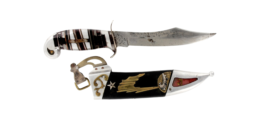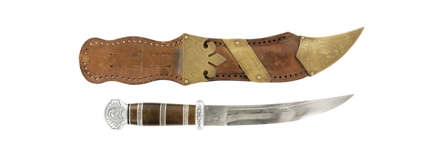 Упрыгожаннем калекцыі з’яўляецца ятаган, падораны ад імя югаслаўскага народа І.Б. Ціта Герою Савецкага Саюза, былому беларускаму партызану, камандзіру дыверсійнай групы У.А. Парахневічу падчас першага пасляваеннага візіту дэлегацыі Беларускай ССР у Бялград. Старадаўні меч арабскага паходжання ў сярэбраных, з багатым дэкаратыўным аздабленнем ножнах, стаў сімвалам братэрства па зброі ў барацьбе супраць фашызму.