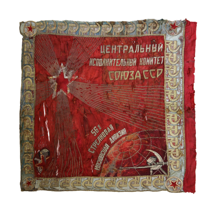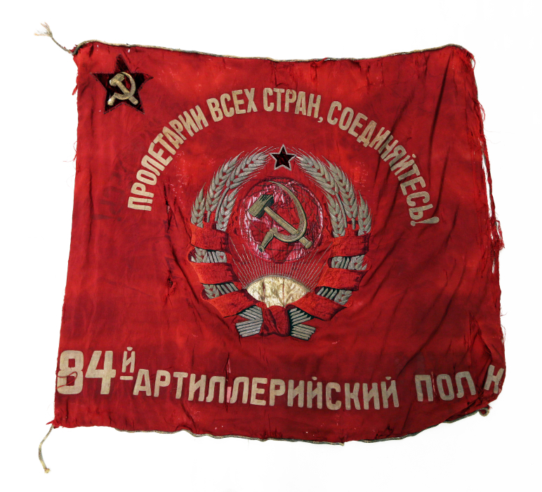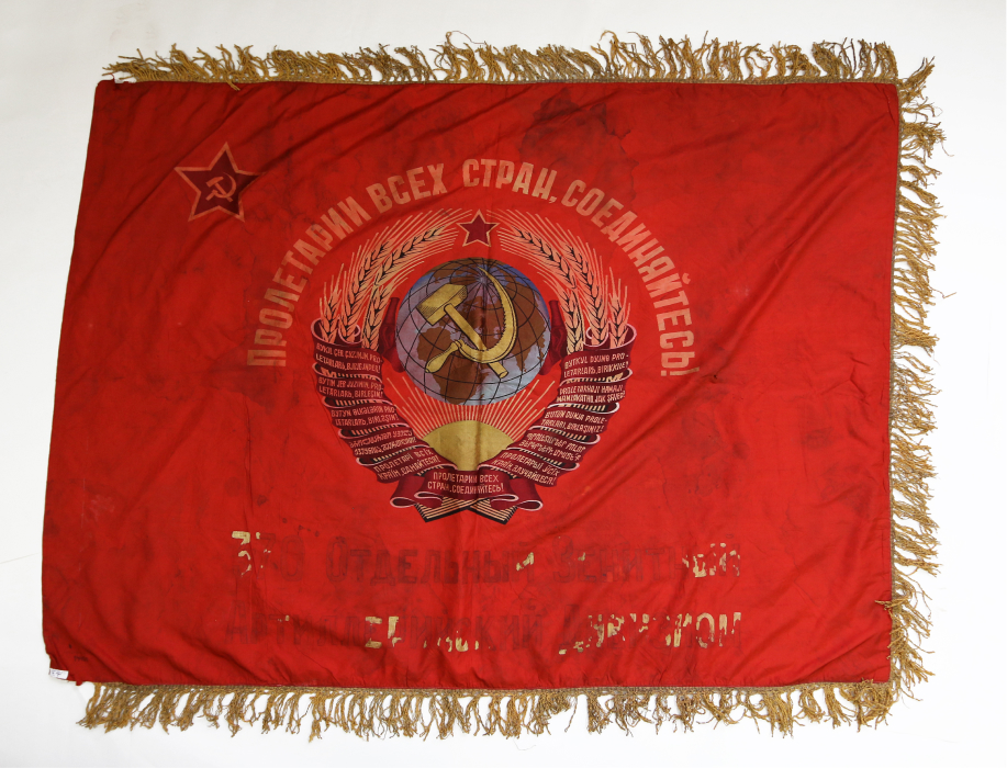 В 1937 г. ЦИК и СНК СССР утвердили новый образец знамён РККА. На лицевой стороне полотнища изображен герб СССР, на оборотной – надпись “Верховный Совет СССР”. В музее хранится знамя 370-го отдельного зенитного артиллерийского дивизиона, который в составе 24- й стрелковой дивизии с тяжелыми боями вышел из окружения к линии фронта, совершив 500-километровый поход по тылам врага. Из Центрального музея Вооружённых Сил СССР были переданы боевые знамёна образца 1942г. воинских частей, участвовавших в освобождении Беларуси. Для гвардейских воинских частей был создан специальный образец знамени с изображением знака “Гвардия” и девиза "Смерть немецким оккупантам!».