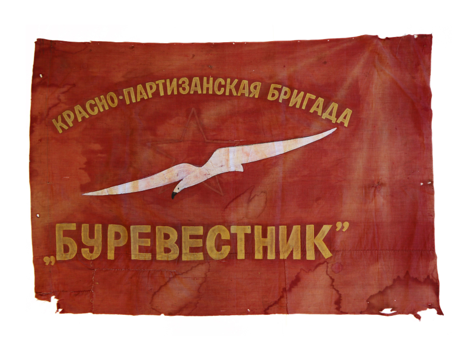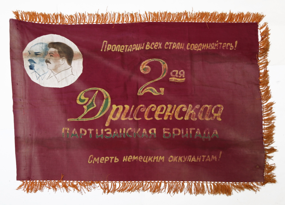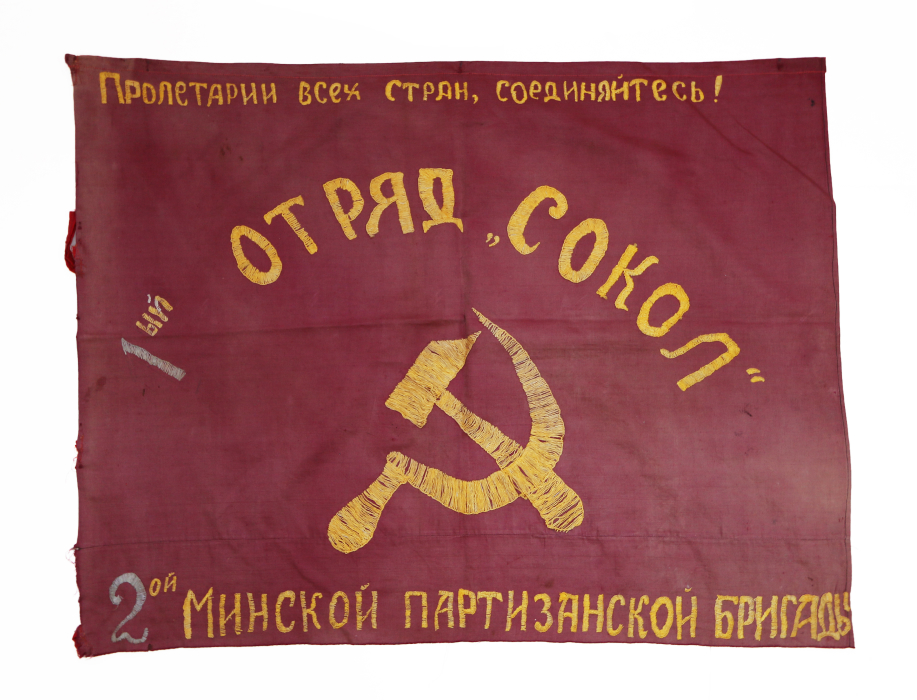 Знамёна партизанских отрядов и бригад положили начало формированию коллекции знамён в фондах музея. 16 июля 1944 г. в Минске состоялся незабываемый партизанский парад, в котором приняли участие более 30 тысяч белорусских партизан Они прошли под боевыми знаменами своих отрядов и бригад. После расформирования отрядов знамёна были переданы в музейные фонды из Белорусского штаба партизанского движения. Знамёна народных мстителей уникальны, потому что единого образца партизанского знамени не существовало. В каждом партизанском отряде, бригаде было своё боевое знамя. Зачастую, когда не было возможности достать красную ткань, тогда при изготовлении использовали самодельные природные красители, такие как настой коры ольхи, или окрашивали полотнища в красный цвет раствором стрептоцида.