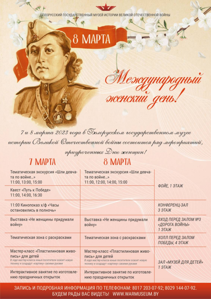 7-8 марта 2023 года в Белорусском государственном музее истории Великой Отечественной войны состоится ряд мероприятий, приуроченных Международному дню женщин!