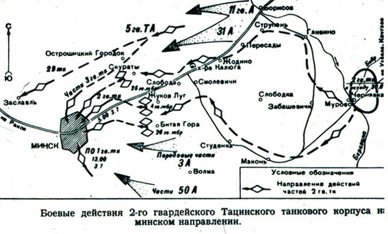 К 6.00 утра все главные силы корпуса вели бой в городе. К 10 часам наши бригады громили противника в центральной и западной частях города. К середине дня корпус вышел из города, заняв отведенные ему рубежи западнее Минска. Столица Беларуси была наша».