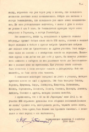 К концу июня в подвале «…закончились сухари, не было воды, и, самое главное, подошли к концу боеприпасы. Решено было идти на прорыв от Тереспольского моста в лес. Вся группа атаковала немцев, стараясь сблизиться для рукопашной схватки. Мы несли большие потери… Но все же некоторым из нас удалось скрыться за стеной электростанции, а потом перейти в подвалы 333-го полка».