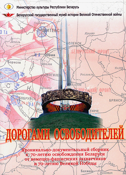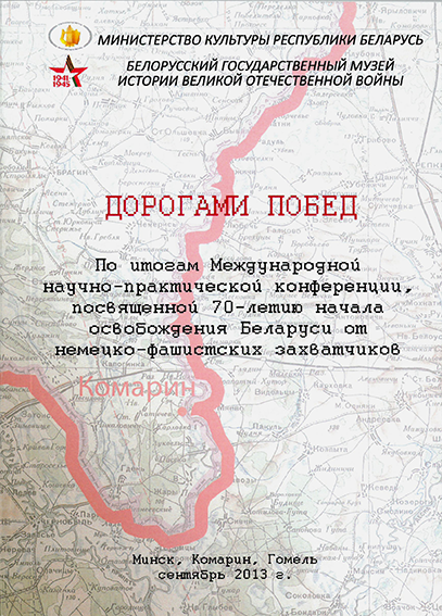 В сборник вошли материалы Международной научно-практической конференции «Дорогами побед» (Гомель, 24 сентября 2013 г.); материал об участии 23 сентября 2013 года делегации музея в торжествах в г.п. Комарин Брагинского района в честь освобождения первого районного центра Беларуси; статья Н.Д. Шевченко «Освобождение» («СБ. Беларусь сегодня» № 176 от 19.09.2013); отчет о презентации мультимедийной программы «Освобождение Беларуси. День за днем: 23 сентября 1943 – 28 июля 1944 гг.»; хроника освобождения Беларуси в 1943 – 1944 гг. Под общей редакцией Н.В. Скобелева Ответственный за выпуск – Н.Д. Шевченко Компьютерная верстка и дизайн обложки – И.Б. Поверенная Минск: ГУ «РУМЦ ФВН, 2013. – 104 с. |