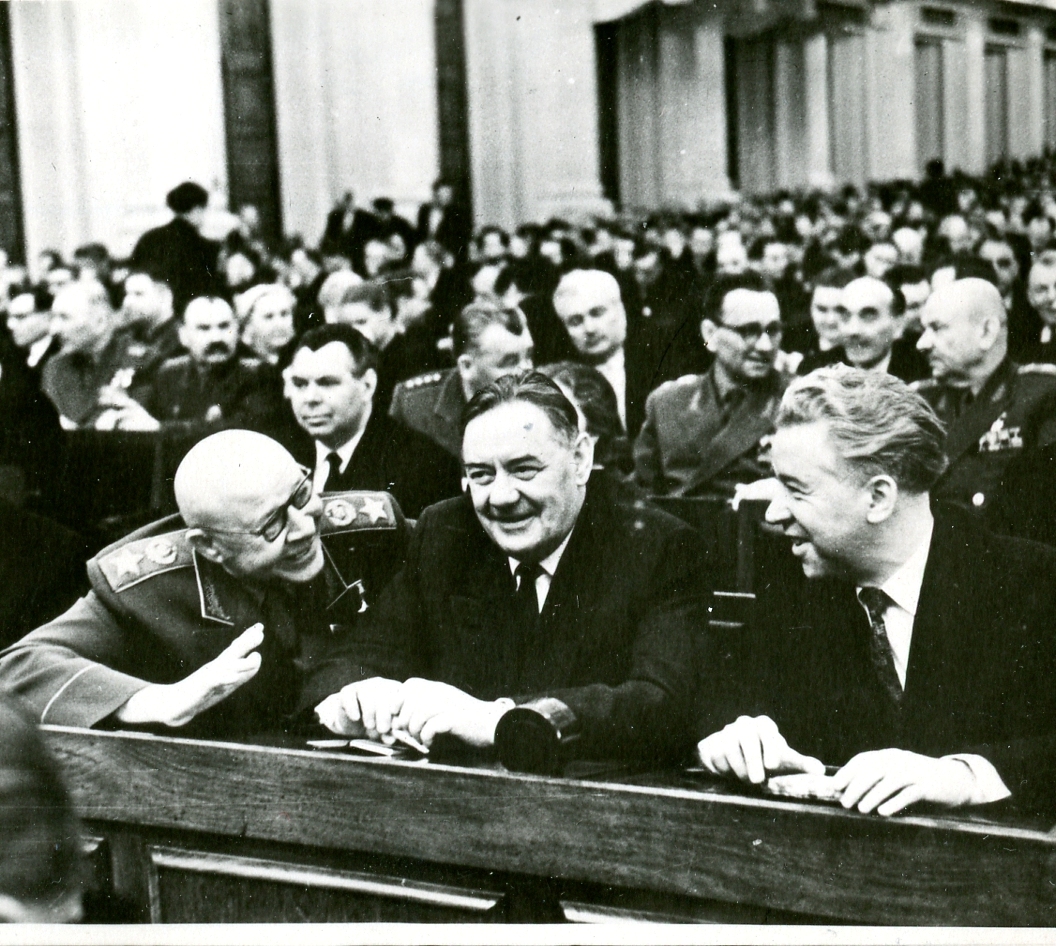 Член ЦК КПСС В.И. Козлов (в центре) на пленуме ЦК КПСС. Слева Маршал Советского Союза С.К. Тимошенко, справа посол в ГДР П.А. Абрасимов. 6 марта 1962 г.