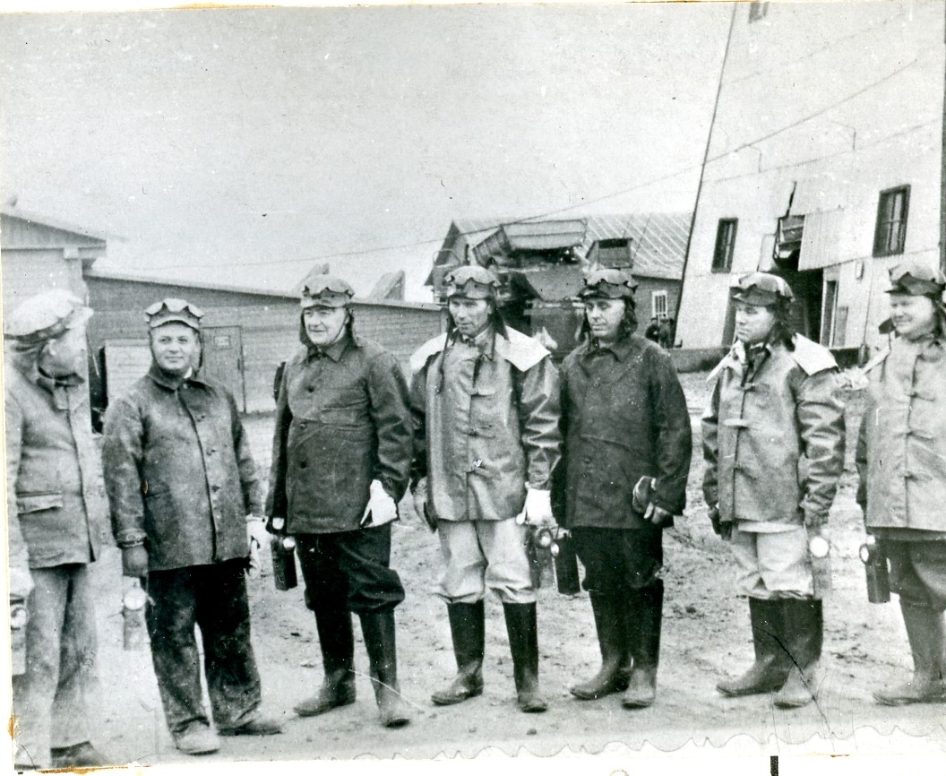 В.И. Козлов среди шахтеров Солигорского калийного комбината. 1961 г.