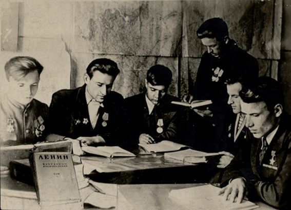 партийной школы при ЦК КПБ(б). 1-й справа Герой Советского Союза Ф.П. Котченко. 1945 г.