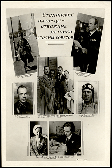| Фотоколлаж «Сталинские питомцы – отважные летчики Страны Советов». На центральном снимке 1-й слева – Герой Советского Союза М.М. Громов. |