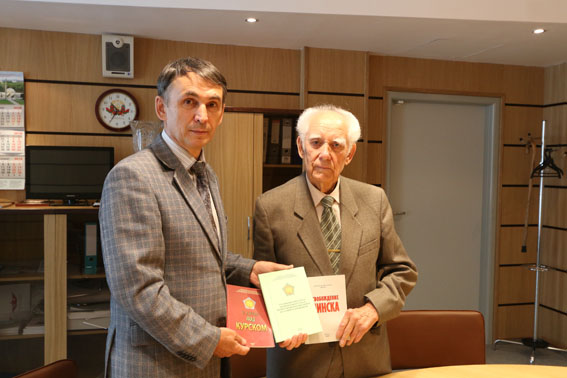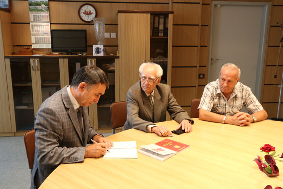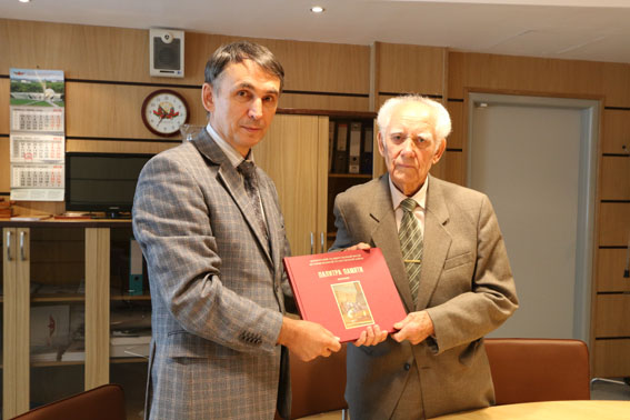 Директор Белорусского государственного музея истории Великой Отечественной войны Николай Витальевич Скобелев поблагодарил генерал-майора в отставке Александра Федоровича Феня за подаренные книги-воспоминания, активную работу по пропаганде боевых традиций белорусского народа и его Вооруженных Сил, участие в патриотических мероприятиях, проводимых в музее, и вручил заслуженному ветерану памятный сувенир.