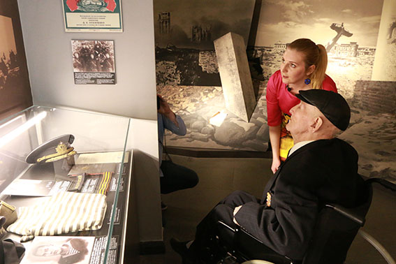 Обзорную экскурсию с участником войны Н.Н. Вдовиным провела научный сотрудник музея Екатерина Владимировна Новицкая.