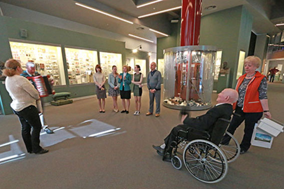 В заключение в одном из залов музея для участника войны была душевно исполнена песня Давида Тухманова «День Победы».