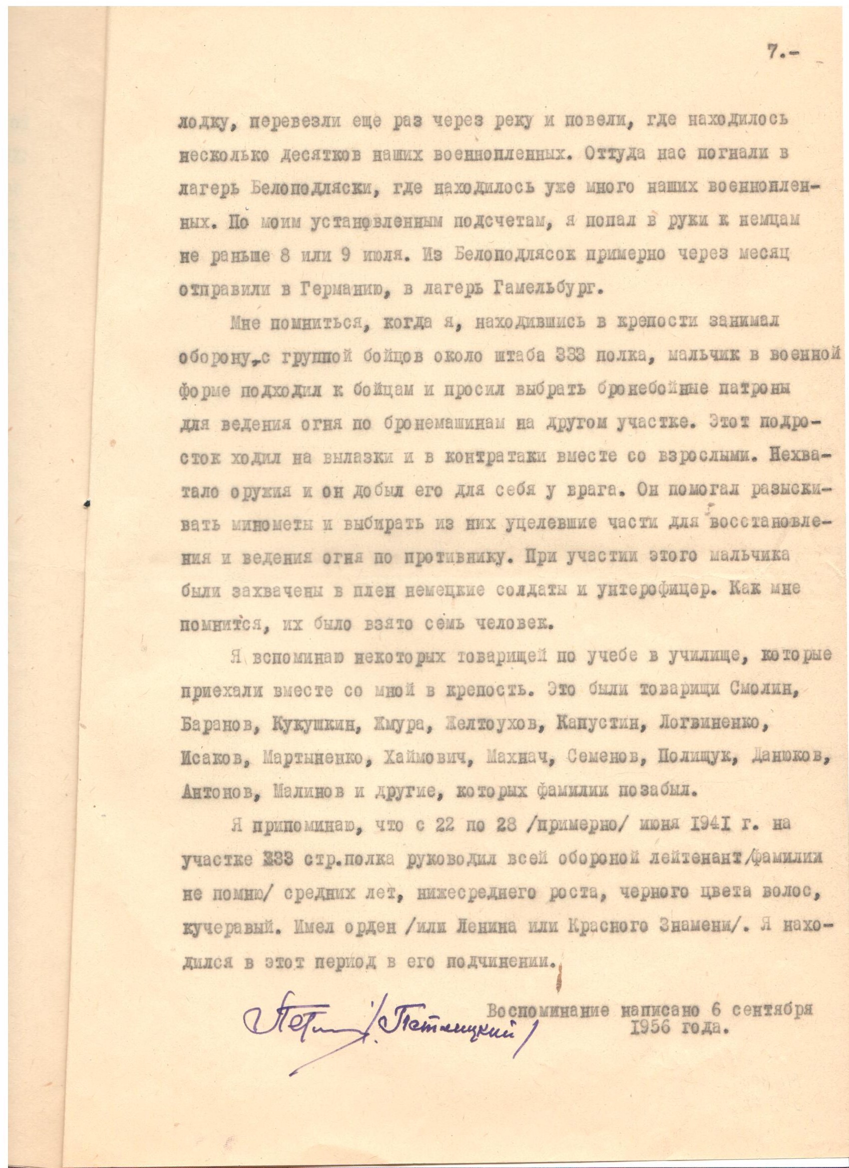 В страшные июньские дни 41-го минчанин Александр Леонтьевич Петлицкий был одним из тех, кто «стоял насмерть» за Брестскую крепость. По его воспоминаниям сняты фильмы «Есть огонь», «И вечно будет май». Как и Александр Иванович Махнач, он был направлен 17 июня 1941 г в Брест-Литовскую крепость в 445 СП 42 дивизии.
