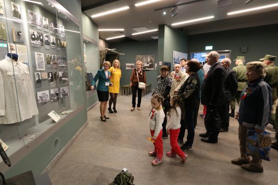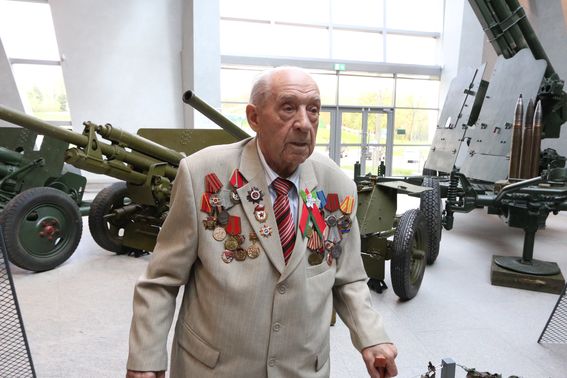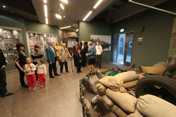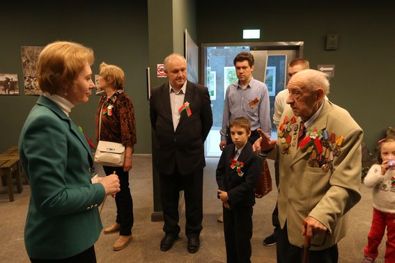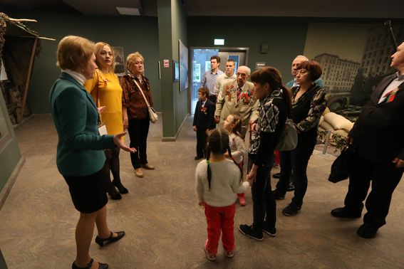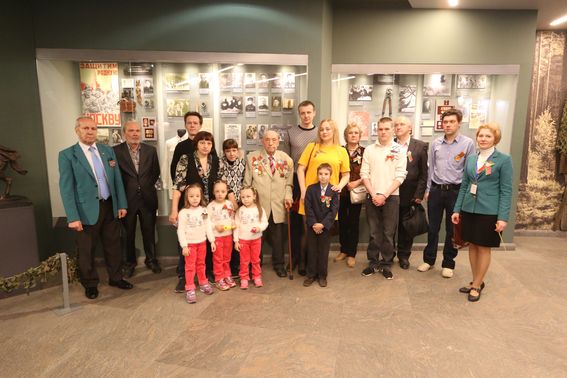С ветераном и членами его семьи заведующий сектором научно-методической работы Татьяна Федоровна Политыко провела тематическую экскурсию «Подвигу народа жить в веках!». В экспозиции зала №4 «Начало Великой Отечественной войны. Оборонительные бои в Беларуси летом 1941 г. Смоленское сражение. Битва под Москвой (30 сентября 1941 – февраль 1942 гг.) особое внимание ветерана Самонова и его родных привлекли: плакат художника Б. А. Мухина «Защитим родную Москву!», представленные в витрине личные вещи уроженца Витебской области командира 2-го кавалерийского корпуса Героя Советского Союза генерал-майора Л. М. Доватора: гимнастерка, компас, портфель, полевая книжка-блокнот, линейка. Рядом с витриной – скульптура «Герой Советского Союза Л. М. Доватор на лошади», выполненная в 1954 г. известным советским скульптором народным художником БССР А. К. Глебовым. В музее экспонируется 25-мм зенитная пушка, какими прикрывали московское небо от вражеской авиации. Фронтовику М.С. Самонову и членам его семьи показан хроникально-документальный фильм «Военный Парад в Москве 7 ноября 1941 г. – Парад надежды».