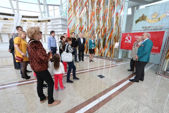 В Зале Победы музея участник войны М.С. Самонов остановился у алтаря Победы, где установлена точная историческая копия Знамени Победы. Она вручена Белорусскому государственному музею истории Великой Отечественной войны 25 мая 2011 г. в Минске на Международной научно-практической конференции «Беларусь: история и современность» директором Центрального музея Вооруженных Сил Министерства обороны Российской Федерации полковником в отставке Александром Никоновым.