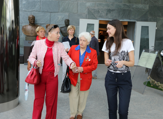 Во время экскурсии по музею Тамара Петровна активно делилась с сотрудниками воспоминаниями о войне и своем муже Константине Сергеевиче, имя которого увековечено в зале Победы среди имен других Героев Советского Союза – белорусов и воинов других национальностей, отличившихся на нашей земле. От Тамары Петровны нам стал известен и такой интересный факт: Константин Сергеевич Лисицин – единственный Герой Советского Союза из актеров Советского Союза.