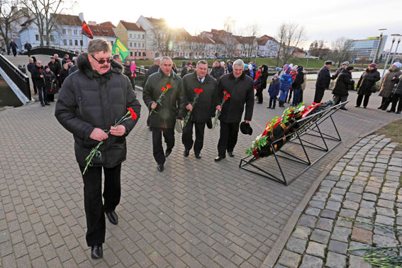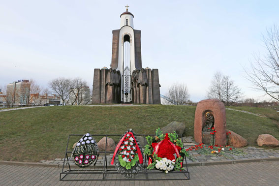 Присутствующие возложили венки и цветы к Образу Божией Матери, храму-памятнику «Сынам, загінуўшым у Афганістане…», к камням с названиями провинций и городов Афганистана, в которых дислоцировались советские воинские части и соединения.