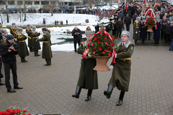 Под звуки военного оркестра состоялось возложение венков и цветов к памятнику с бронзовой иконой Божьей Матери и текстом: «Сынам, загінуўшым у Афганiстане, уведзены гэты храм-помнік по даручэнні беларускіх маці, якія не жадаюць, каб зло панавала ні на сваей ні на чужой зямлі».
