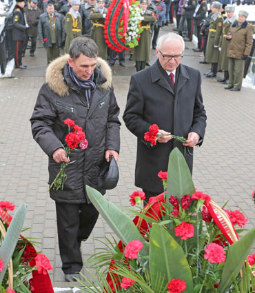 В церемонии возложения приняли участие Министр культуры Борис Светлов и директор Белорусского государственного музея истории Великой Отечественной войны Николай Скобелев.
