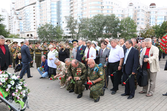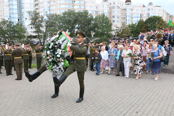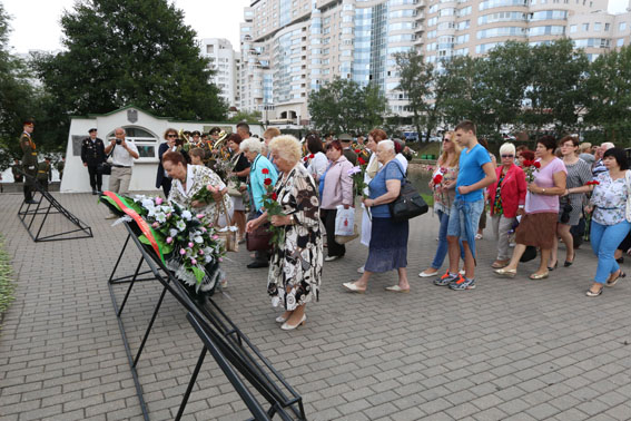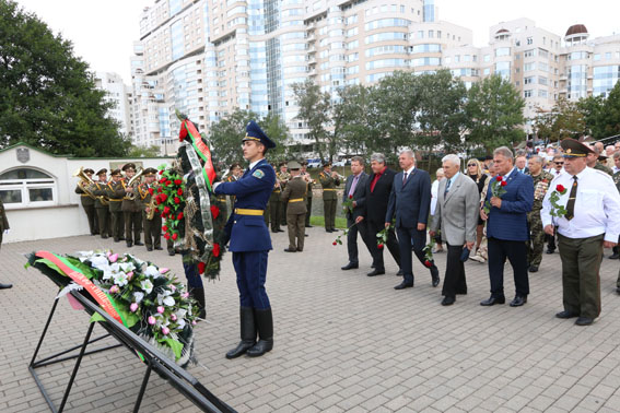 В торжественной обстановке к памятнику были возложены венки от Министерства обороны Республики Беларусь, Минской городской организации ветеранов войны в Афганистане «Память», общественного объединения «Белорусский союз ветеранов войны в Афганистане», Мингорисполкома, других ведомств, организаций, учреждений и общественных организаций.