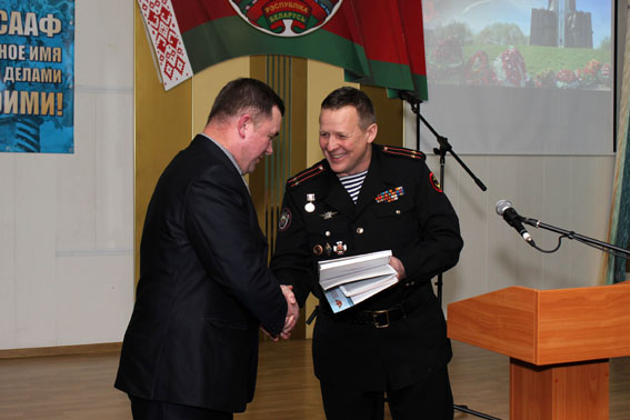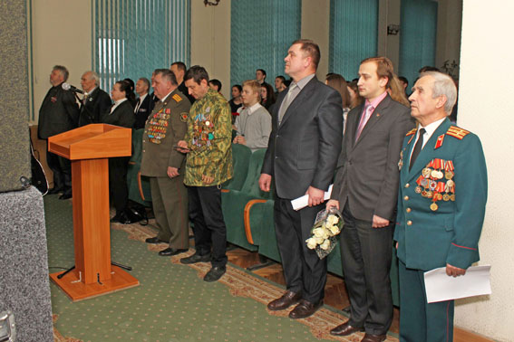 В вечере принял участие и выступил заведующий филиалом Белорусского государственного музея истории Великой Отечественной войны «Памятник воинам-интернационалистам» подполковник запаса Виктор Иванчиков. «Осенью этого года, – сказал он, – исполняется 20 лет с того периода, когда на Острове Мужества и Скорби возведен символ памяти – памятник воинам-интернационалистам. Кроме того, теперь часть набережной реки Свислочь от острова до гостиницы «Беларусь» называется набережной Воинов-интернационалистов. Это еще один символ памяти, который всегда будет жить в наших сердцах». В.А. Иванчиков вручил народному Музею истории ДОСААФ памятный сувенир.