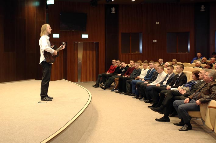 В конференц-зале собрались любители творчества Владимира Семёновича – сотрудники музея, служащие Минского военного суворовского училища, курсанты Академии МВД Республики Беларусь, учащиеся столичного строительного лицея№10 имени Жижеля.