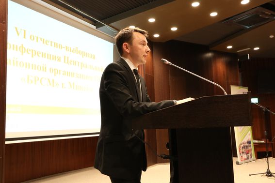 С отчетным докладом на конференции выступил исполняющий обязанности первого секретаря Центрального РК БРСМ г. Минска Антон Юрьевич Купчин. В отчете молодежного лидера отмечалось, что в Центральном районе столицы проживает около 30 тысяч молодых людей, что составляет порядка 27 % от общего числа жителей района. На предприятиях, в организациях и учреждениях образования работают и получают образование более 16 тысяч человек. В районе налажена системная работа с молодежью. С целью гражданского становления и развития творческого потенциала молодых людей, поддержки детских и молодежных общественных объединений, молодых специалистов и молодых семей организовываются культурно-массовые, физкультурно-оздоровительные, профилактические и образовательные мероприятия, в которых ежегодно принимают участие порядка 15 тысяч человек. Среди них наиболее значимыми и массовыми являются: фестиваль студенческого творчества «Осенний марафон», конкурс талантливой молодежи «Лидер года», молодежный туристическо-художественный слет, конкурс мужества и артистического мастерства, интеллектуальные игры и другие.