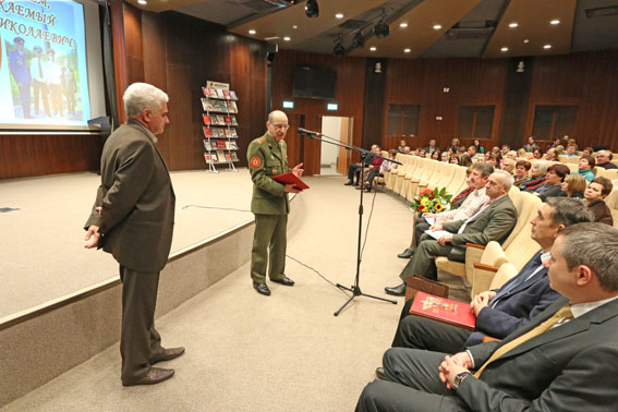 15 декабря 2016 г. в конференц-зале Белорусского государственного музея истории Великой Отечественной войны состоялось чествование заместителя директора Юрия Николаевича Цыкала в связи с 60-летием со дня рождения. От имени коллектива юбиляра тепло поздравил директор музея Дмитрий Геннадьевич Шляхтин, который отметил, что вся жизнь Ю.Н. Цыкала посвящена беззаветному служению Отечеству и неразрывно связана с армией, где за 37 лет безупречной службы он прошел достойный уважения путь от курсанта Каменец-Подольского высшего военного командного инженерного училища до полковника Вооруженных Сил Республики Беларусь. Руководитель учреждения Д.Г. Шляхтин особо подчеркнул, что свой юбилей Юрий Николаевич встречает в расцвете жизненных сил и творческой энергии: профессиональные знания и навыки, приобретенные в период военной службы, он, как опытный и мудрый наставник, умело использует в целеустремленной работе по совершенствованию деятельности музея. Ю.Н. Цыкал по праву пользуется большим уважением и заслуженным авторитетом в коллективе, является ответственным и грамотным специалистом, принципиальным, надежным и порядочным человеком с активной жизненной позицией.