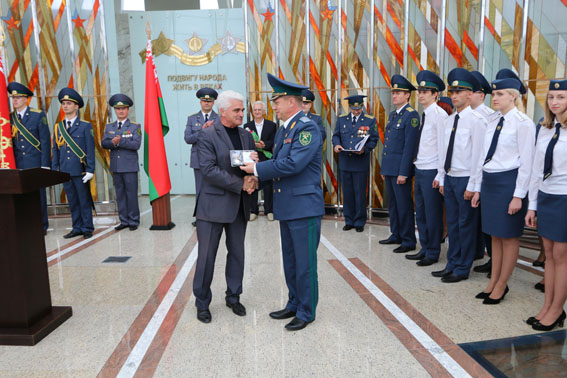 Поздравляя своего товарища с юбилеем, помощник директора музея Николай Дмитриевич Шевченко вручил Юрию Николаевичу свежие выпуски «Белорусской военной газеты. Во славу Родины» со статьей «Наследуя офицерскую честь» и газеты «Коммунист Беларуси. Мы и время» с материалом «На передовой культурного фронта», посвященные юбиляру.