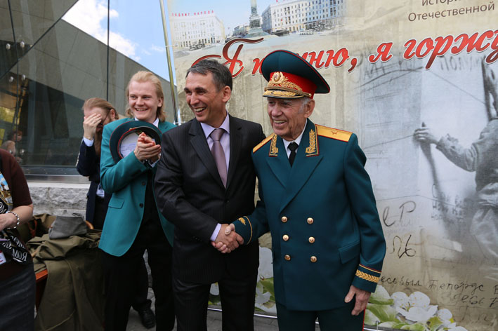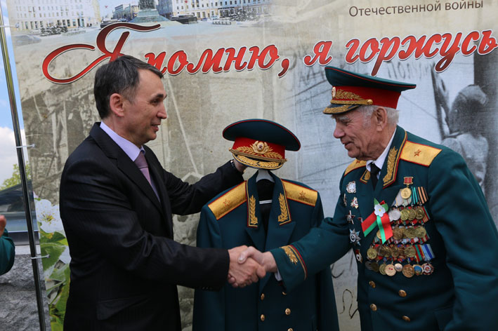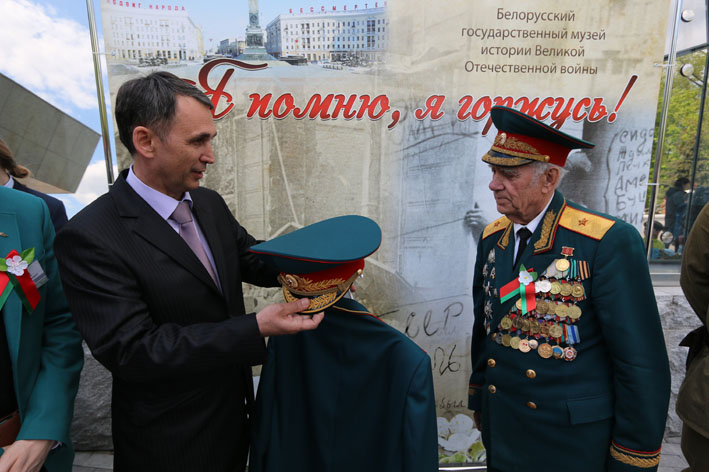 Директор Белорусского государственного музея истории Великой Отечественной войны Николай Витальевич Скобелев поблагодарил генерал-майора в отставке Александра Федоровича Феня за активную работу по пропаганде боевых традиций белорусского народа и его Вооружённых Сил, участие в патриотических мероприятиях, проводимых в музее, и вручил ему новую парадную форму советского образца.