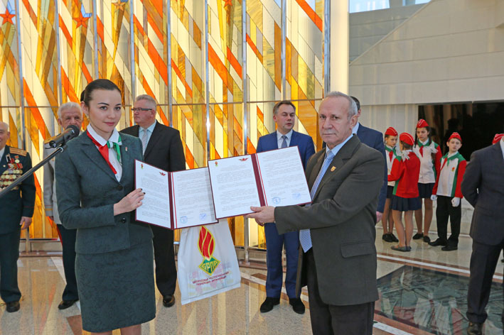 В Зале Победы музея состоялся прием в ряды пионерской организации. После торжественной клятвы галстуки пионерам повязали почетные гости мероприятия – заместитель председателя Мингорисполкома Игорь Карпенко, начальник Главного управления идеологической работы, культуры и по делам молодежи Мингорисполкома Павел Скалабан, заместитель председателя Комитета по образованию Мингорисполкома Виталий Пригодич, второй секретарь ЦК БРСМ Сергей Клишевич. В торжественных мероприятияхучаствовали такжепредседатель Белорусского общественного объединения ветеранов генерал-лейтенант Анатолий Новиков, почетная пионерка Ада Черкащенко, участник Великой Отечественной войн полковник Владимир Бородин.