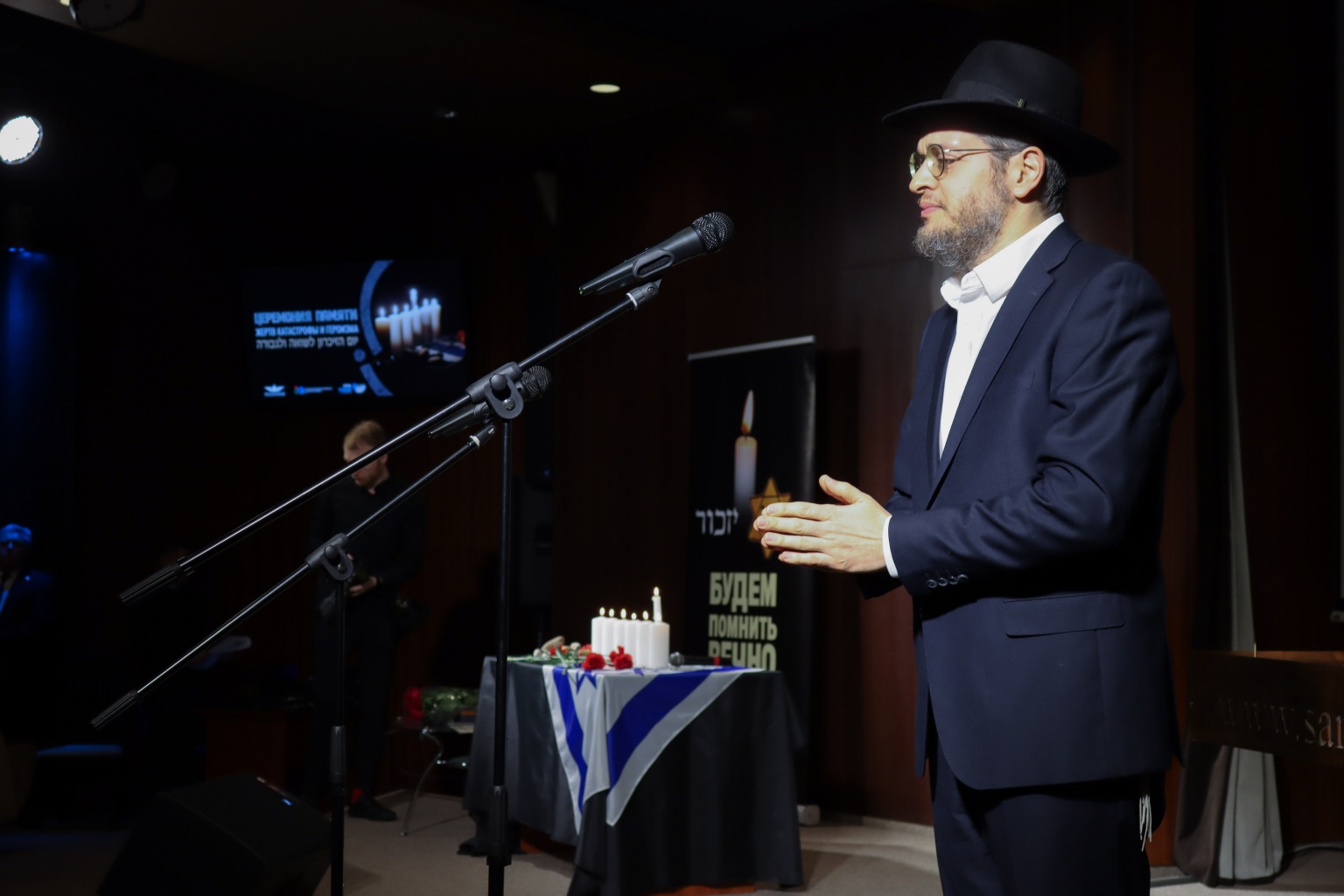 От имени еврейской общины Беларуси выступил Председатель Союза еврейских общественных объединений и общин Олег Рогатников: «Я зажигаю эту свечу в память о своем отце, который воевал в рядах Красной армии, пожил долгую и счастливую жизнь».