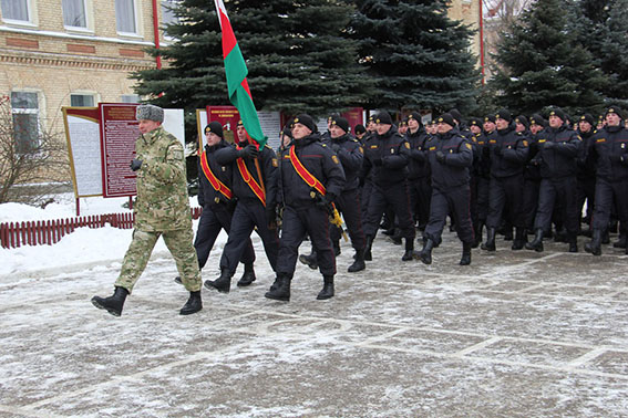 В настоящее время участники парадных расчетов проводят тренировки торжественного марша на базе Центра повышения квалификации МВД Республики Беларусь. Они примут участие 4 марта 2017 г. в параде на Октябрьской площади в Минске в честь векового юбилея милиции Беларуси.