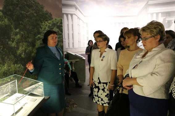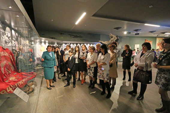 С экспозицией музея многодетных женщин ознакомила младший научный сотрудник Анна Петровна Кузюкович. На память о посещении музея женщины сфотографировались в Зале Победы.