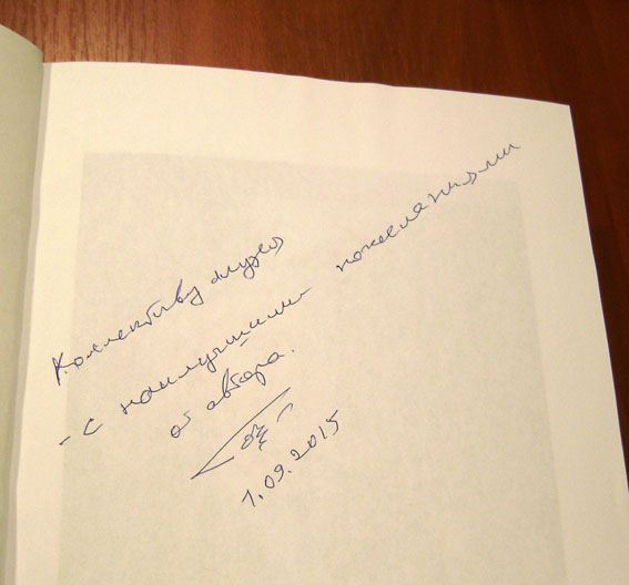 При передаче книги присутствовали: сын ветерана, офицер запаса, участник боевых действий в Афганистане Василий Владимирович и внук Владимир. Книгу принял помощник руководителя музея, член Белорусского союза журналистов Николай Шевченко.