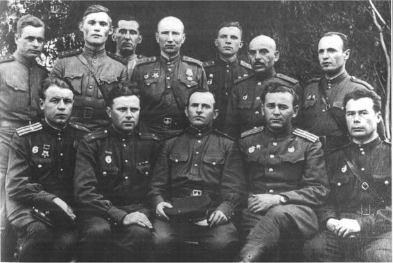 Герой Советского Союза гв. генерал-майор А. А. Асланов (в 1-м ряду в центре) и офицеры бригады. 23.06.1944 г.
