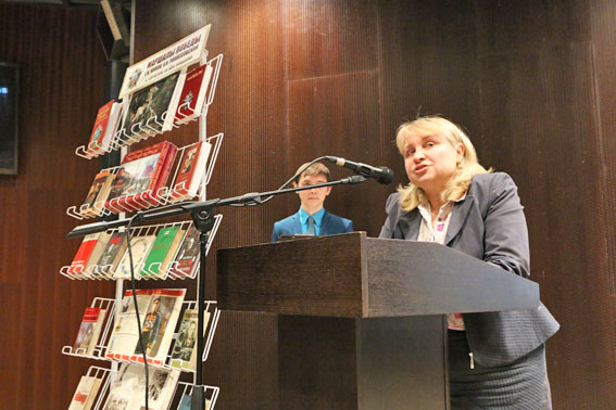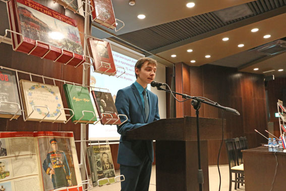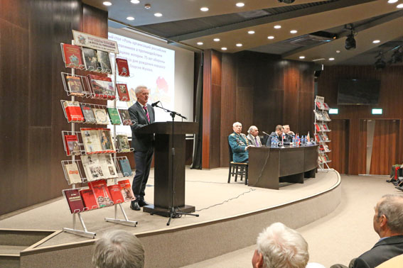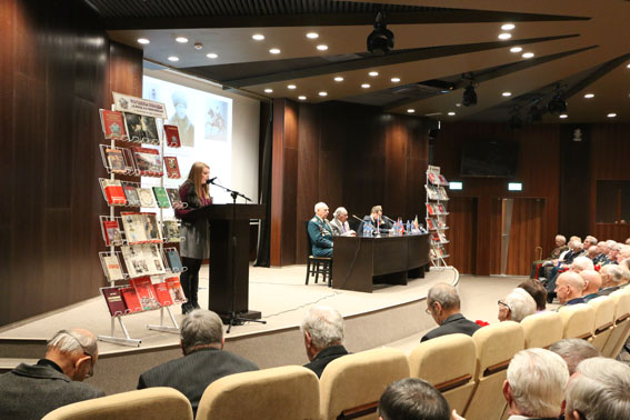 Библиотекарь музея Ольга Ивановна Кравцова на заседании круглого стола сделала обзор литературы подготовленных ею книжных выставок – «Полководцы Великой Победы» и «Битва за Москву».