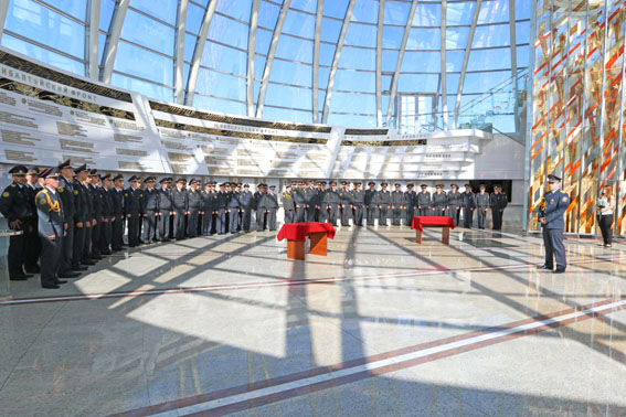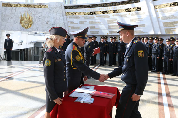 Присягая под сводами величественного Зала Победы, сотрудники внутренних дел поклялись свято соблюдать Конституцию и законы Республики Беларусь, быть честными, мужественными, бдительными при исполнении служебного долга, строго хранить государственную и служебную тайну, не щадя своей жизни, охранять права, свободы и законные интересы граждан, общества и государства от преступных и иных противоправных посягательств.