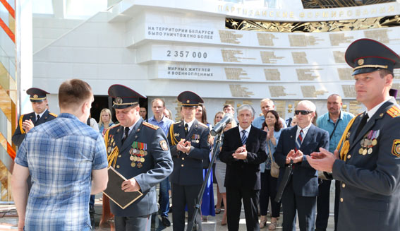 Начальник Центра полковник милиции И.Н. Оберемко на торжестве вручил почетную грамоту сотруднику музея Егору Потупчику за активное сотрудничество при проведении совместных патриотических мероприятий.