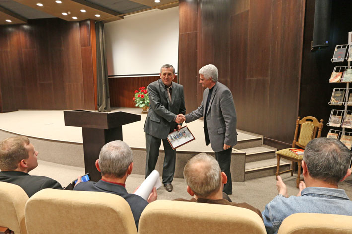 Юрий Николаевич вручил В.А.Сероштану памятную фотографию торжественного старта международного патриотического автопробега ДОСААФ Беларуси и России «Дорогами славы» Москва-Минск-Торгау, осуществлённого 29 апреля нынешнего года у здания Белорусского государственного музея истории Великой Отечественной войны.