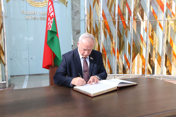 Возглавлявшие областные и Минскую городскую делегации руководители административно-территориальных образований оставили благодарственные записи в книге отзывов музея.