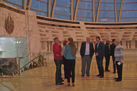 В Зале Победы музея участники 45-го заседания Генеральной ассамблеи Европейских олимпийских комитетов сфотографировались на память. Им вручены рекламные буклеты о Белорусском государственном музее истории Великой Отечественной войны.
