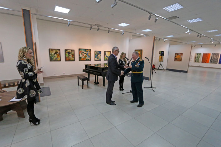 Торжественная церемония награждения медалями «70 лет освобождения Республики Беларусь от немецко-фашистских захватчиков» состоялась 23 февраля 2015 года в художественной галерее Михаила Савицкого (Минск, пл.Свободы, 15).
